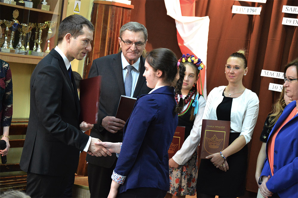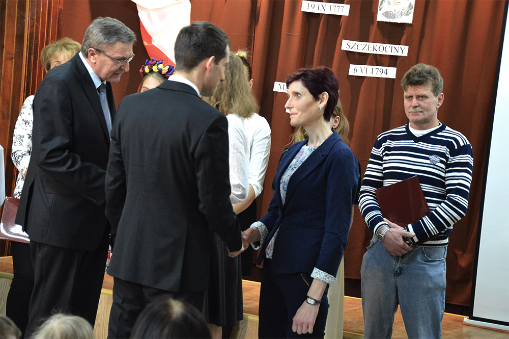 Wręczenia aktów przyznania stypendiów uczniom oraz listów gratulacyjnych rodzicom dokonali Wójt Jakub Gwit, Przewodniczący Rady Gminy Bogdan Piotrowski wraz z  dyrektor ZSP Grażyną Niedzielską. Stypendia otrzymali: