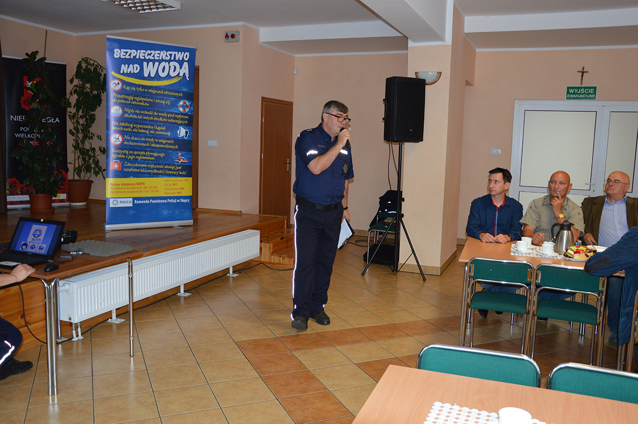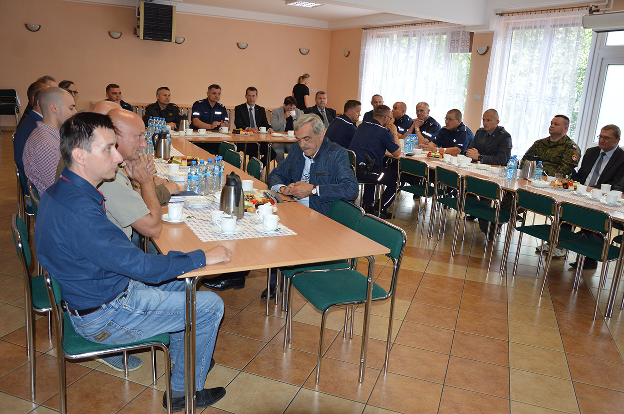 Wójt Gminy Powidz – Jakub Gwit zabierając głos w dyskusji przedstawił charakterystykę gminy Powidz ze szczególnym uwzględnieniem jej walorów turystycznych i  problemów związanych z dużą liczba odwiedzających ją osób w okresie letnim.  Naczelnik Wydziału Prewencji KPP w Słupcy kom. Robert Górny omówił zasady pełnienia służby na terenach wodnych i przywodnych powiatu słupeckiego , działania prewencyjne podejmowane przez policję oraz wskazał na zagrożenia jakie wynikają z uwarunkowań terenu. Komendant Placówki Żandarmerii Wojskowej w Powidzu por. Przemysław Kąkolewicz pokrótce omówił zadania powidzkiej placówki Żandarmerii w kontekście obecności wojsk sojuszniczych USA w Powidzu.  O roli PSP w zapewnieniu bezpieczeństwa wspomniał również Komendant Powiatowy Państwowej Straży Pożarnej w Słupcy bryg. Rafał Chmiel. Naradę podsumował Komendant Powiatowy Policji w Słupcy insp. Maciej Kusz.