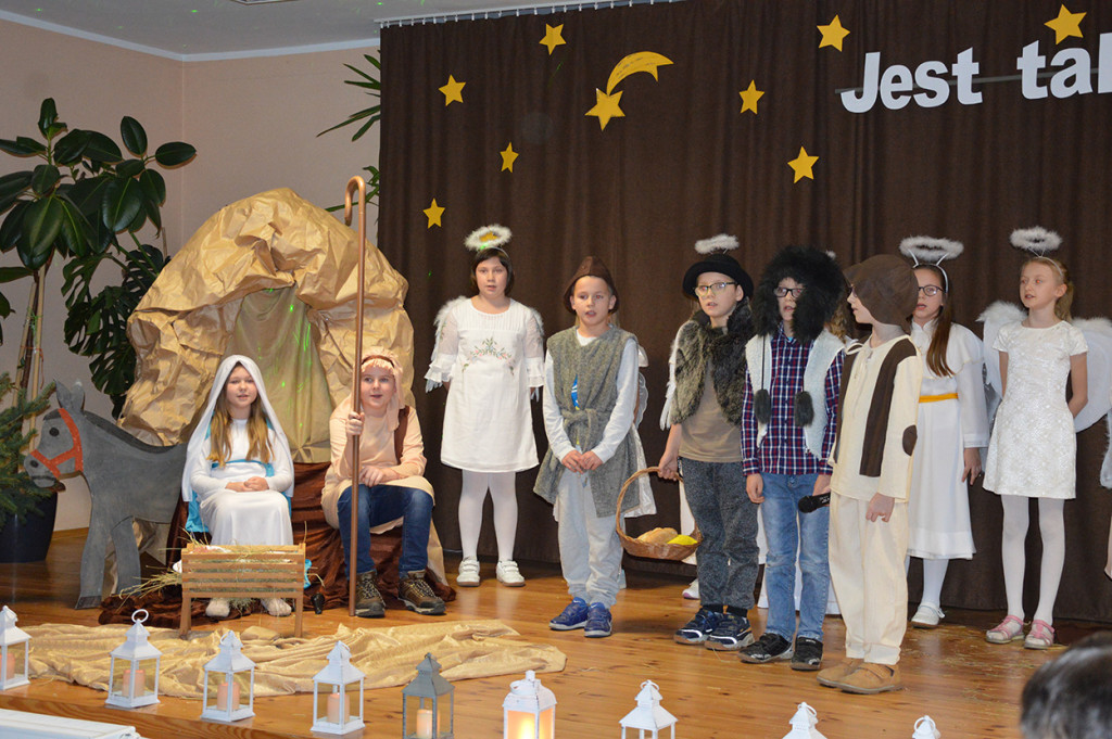 Uroczystość uświetniły Jasełka w wykonaniu uczniów klasy III  Szkoły Podstawowej pod przewodnictwem pani Moniki Brzany.