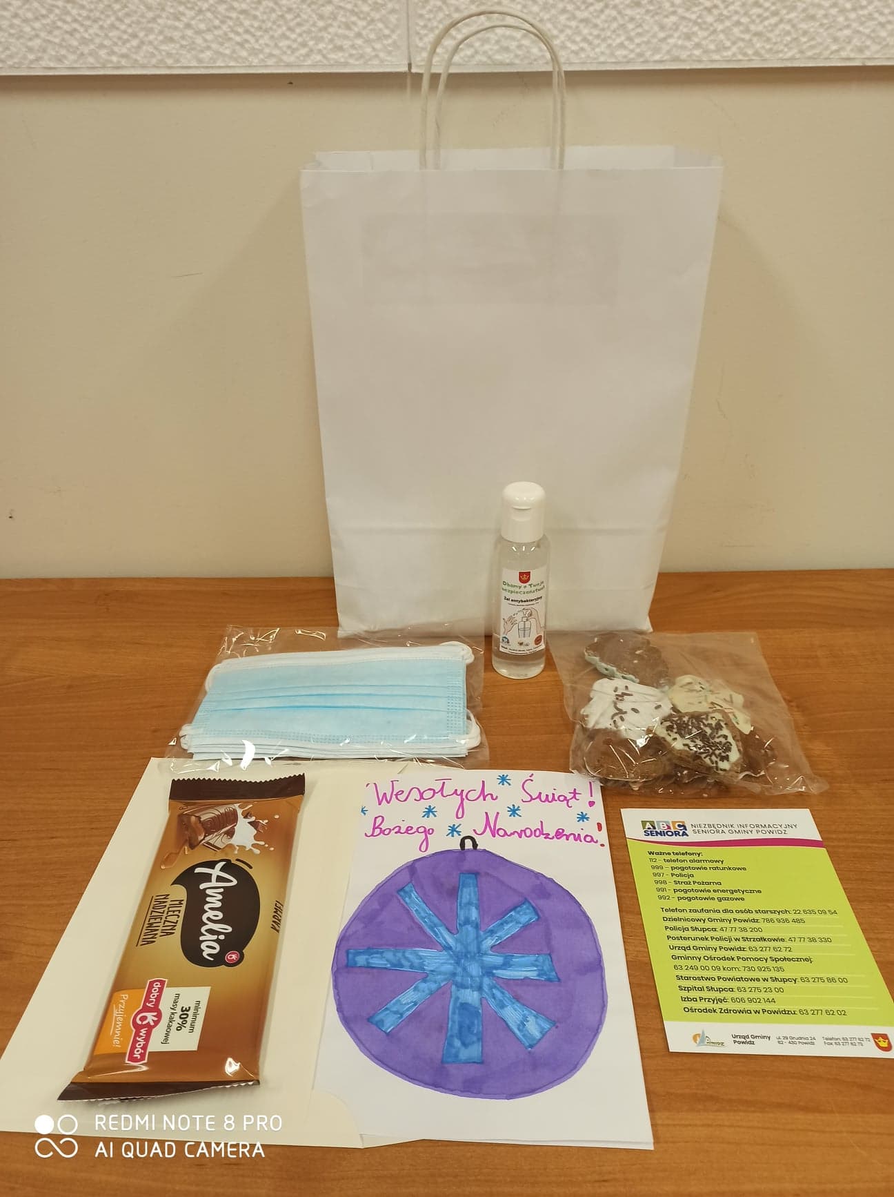 Urząd Gminy w Powidzu wraz z partnerami: Zespołem Szkolno – Przedszkolnym, Domem Kultury, Biblioteką Publiczną, Gminnym Ośrodkiem Pomocy Społecznej, Stowarzyszeniem „Powidz, że jest fajnie”, Ochotniczą Strażą Pożarną oraz wszystkimi Kołami Gospodyń Wiejskich, funkcjonującymi na terenie naszej Gminy przygotowali dla osób pow. 80 roku życia świąteczne paczki, w skład których wchodziły: