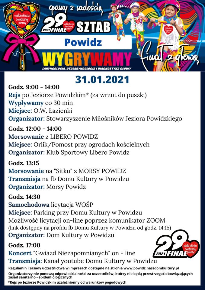 przedstawiamy powidzki harmonogram 29. Finału Wielkiej Orkiestry Świątecznej Pomocy: