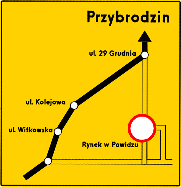 Dopuszczony jest również ruch dwukierunkowy  na pierzei południowej (dojazd do szkoły, ośrodka zdrowia, domu kultury itd.).